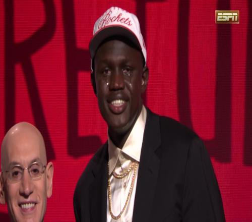 当毕生梦想照进现实的这一刻,这位南苏丹中锋边笑边哭。